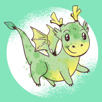 Niedlicher T-Shirt Entwurf, der einen grünen Babydrachen über einem weißen Schmutzhintergrund in der Aquarellart kennzeichnet