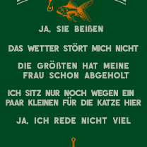 Die praktische Kleidung für alle Angler. Auf dem Rücken befinden sich die Antworten zu allen häufig gestellten Fragen. Man muss kein Wort sprechen und kann doch alles höflich beantworten.