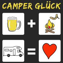 Bier trinken, Grillen, Camping, Glück. Für Wohnmobil Camper.