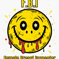 witziger Grunge Emoticon in gelb mit Text F.B.I Female Breast Inspector