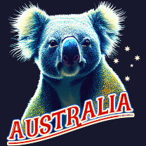 Auffälliges Motiv mit einem Wahrzeichen Australiens - dem Koala. Der Schriftzug lehnt sich an die Nationalflagge an und auch das Kreuz des Südens ist Bestandteil des Drucks.