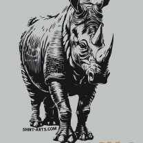 Großes Nashorn Motiv mit Vintage Safari Text-Logo unterlegt. In jedem Fall ein Hingucker und jeder wird vermutlich glauben, dass du gerade von einer Safari kommst.. Zwei weitere Tierdesigns sind im Shop erhältlich.
