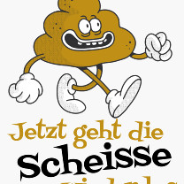 Retro Style Cartoon eines Scheissehaufens der lächelnd spazieren geht. Dazu der passende Text Jetzt geht die Scheisse wieder los