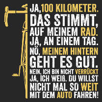 Fair produzierte und öko-zertifizierte Bio-Baumwolle. Gibt's auch mit 200km, 300km und 500km.